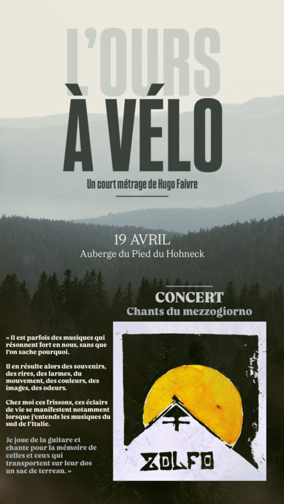 • En seconde partie de soirée, Florian Vella (ZOLFO) nous emmènera avec ses chants du mezzogiorno, sur les terres de son enfance. Un hommage à celles et ceux qui transportent sur leurs dos un sac de terreau.
